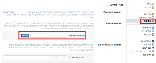 הגדרות – חסימה בפייסבוק